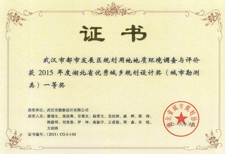 武漢市都市發(fā)展區(qū)規(guī)劃用地地質(zhì)環(huán)境調(diào)查與評(píng)價(jià)獲2015年度全國(guó)優(yōu)秀