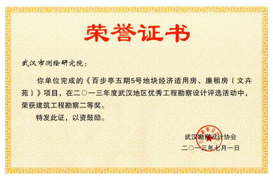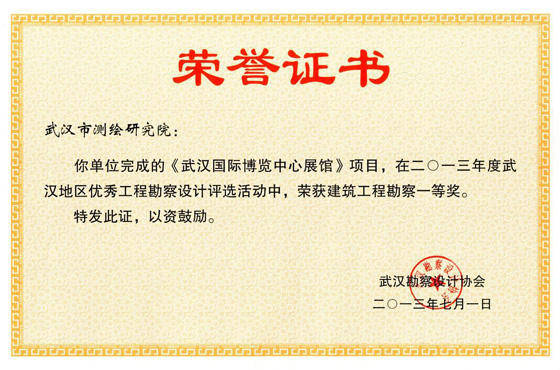武漢市軌道交通四號(hào)線一期工程第三標(biāo)段巖土工程勘察項(xiàng)目獲2015年