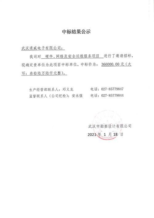 武漢市勘察設(shè)計有限公司硬件、網(wǎng)絡(luò)及安全運維服務(wù)項目中標(biāo)結(jié)果公示