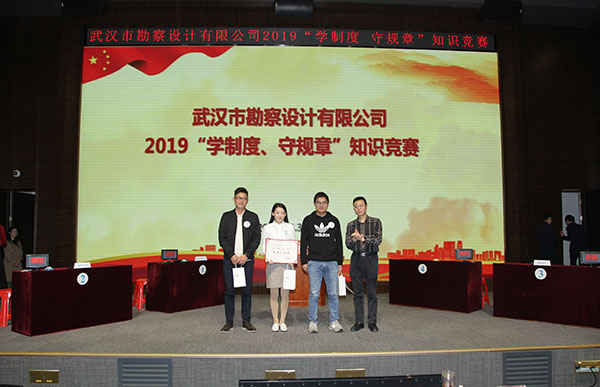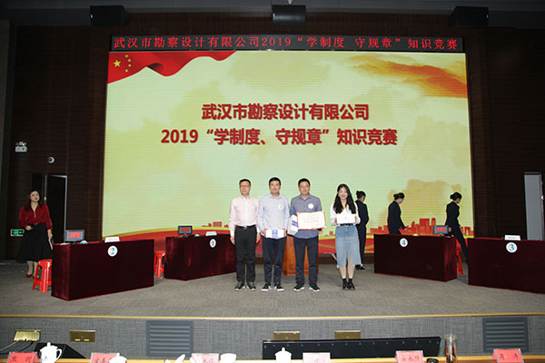 為進(jìn)一步加強(qiáng)員工對(duì)公司企業(yè)文化及各項(xiàng)規(guī)章制度的學(xué)習(xí)和認(rèn)識(shí),提高員工的綜合素養(yǎng),10月30日上午,公司首次舉辦的2019年度“學(xué)制度 守規(guī)章”知識(shí)競(jìng)賽活動(dòng)在測(cè)繪院307學(xué)術(shù)報(bào)告廳成功舉辦。公司董事長(zhǎng)廖建生,總經(jīng)理施木俊,副總經(jīng)理安永強(qiáng)、官善友、蔣濤,代理副總經(jīng)理熊劍,代理總會(huì)計(jì)師龔瑋親臨現(xiàn)場(chǎng)指導(dǎo)并觀看了比賽,公司各部門負(fù)責(zé)人及員工代表共計(jì)100余人參加了活動(dòng)。巖土工程一公司、巖土工程二公司、測(cè)繪工程公司、基礎(chǔ)工程公司、檢測(cè)監(jiān)測(cè)公司、設(shè)計(jì)中心、地質(zhì)環(huán)境中心、不動(dòng)產(chǎn)咨詢中心、東湖分公司、新區(qū)分公司、臨空分公司、土工試驗(yàn)室等12支生產(chǎn)部門代表隊(duì)共36名選手參加了此次比賽。
