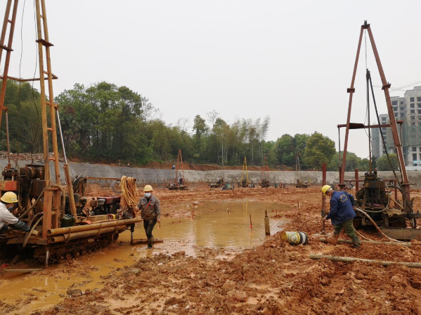 該項目是咸寧市重點棚改項目,對于讓越來越多的住房困難群眾的居住條件得到明顯改善有重要的意義。面對疫情影響、項目工作量大、工期緊的特點,60余名技術(shù)、工作人員涉及從不同地區(qū)返漢、離漢、赴咸等繁雜手續(xù)問題,我公司接到建設(shè)方的開工通知后,在較短時間內(nèi)抽調(diào)技術(shù)骨干、協(xié)調(diào)相關(guān)手續(xù)、組織安排人員及設(shè)備進場作業(yè)。目前進場鉆機10臺,后期根據(jù)疫情逐漸向好的趨勢,計劃再增加5臺設(shè)備,按業(yè)主要求按時保質(zhì)完成工作任務(wù)。