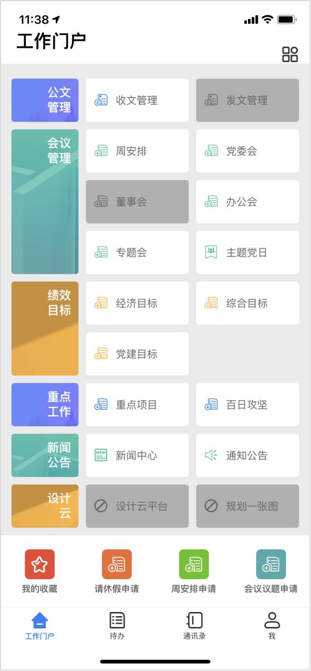 目前,該平臺成功上線了收文管理、會議管理、績效目標、重點工作、考勤管理和車輛管理功能板塊。在勘察公司信息與創(chuàng)研中心項目組成員的努力下,搭建了流轉高效、精準督辦的公文體系,大幅度提升了集團公文辦理效率;實現(xiàn)了會議管理、績效目標、重點工作等數(shù)據(jù)查看方便、跟進有序;完成了集團管理權限范圍內人員請銷假和用車的網(wǎng)上申報、網(wǎng)上審批和網(wǎng)上歸檔。