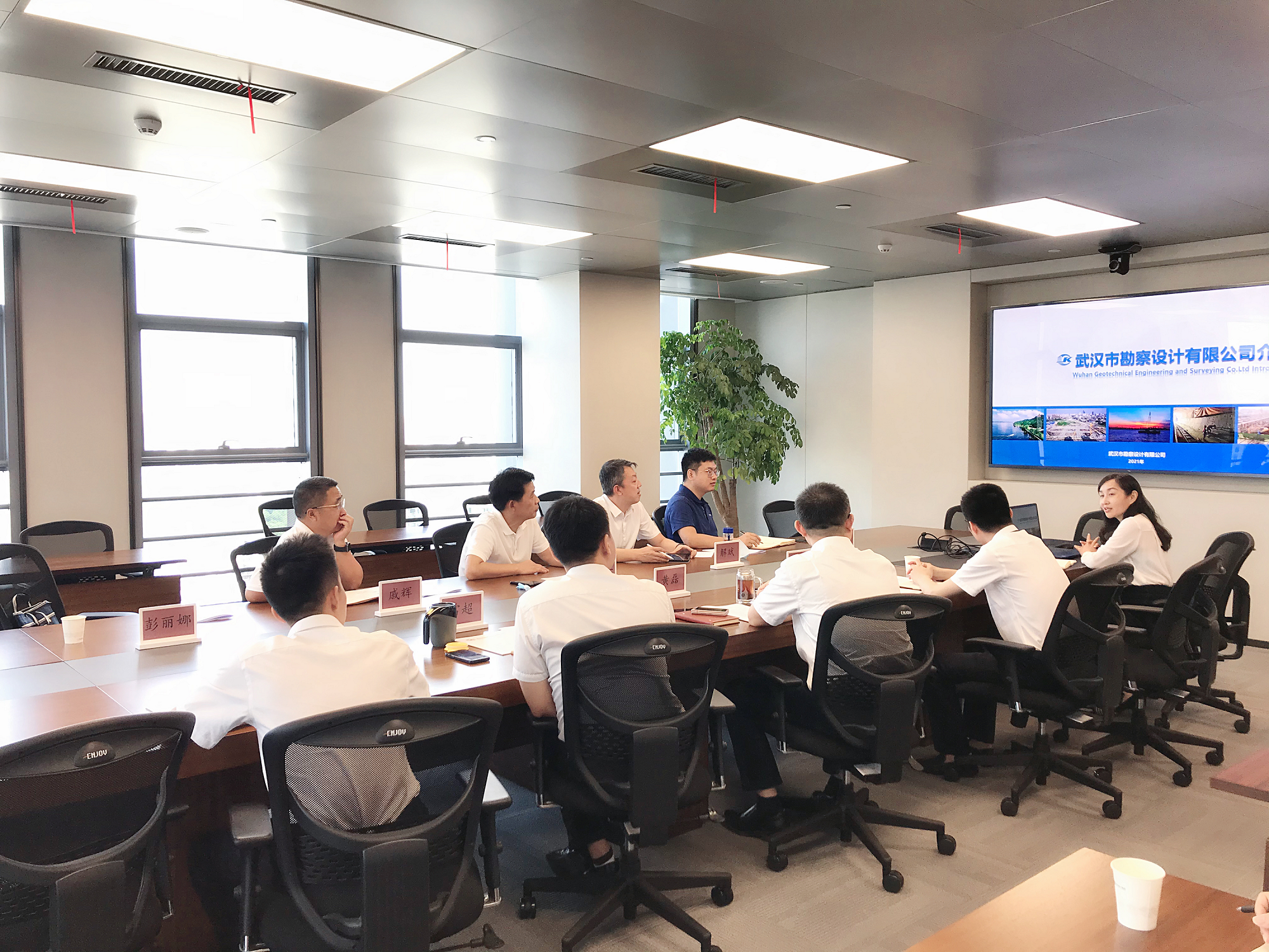 在聽取勘察公司情況介紹后,黃磊對公司一直以來提供的技術(shù)支撐及優(yōu)質(zhì)服務(wù)表示感謝。他提到,勘察公司是行業(yè)佼佼者,擁有強(qiáng)大的技術(shù)實力和人才優(yōu)勢,具備優(yōu)良的市場意識和服務(wù)品質(zhì),參與了眾多重大項目的勘察設(shè)計等技術(shù)服務(wù)工作,有著良好的業(yè)界口碑。他希望,勘察公司能依托自身優(yōu)勢,積極參與武漢市城市更新相關(guān)工作,共同為集團(tuán)發(fā)展和武漢城市建設(shè)出謀劃策、做出貢獻(xiàn)。