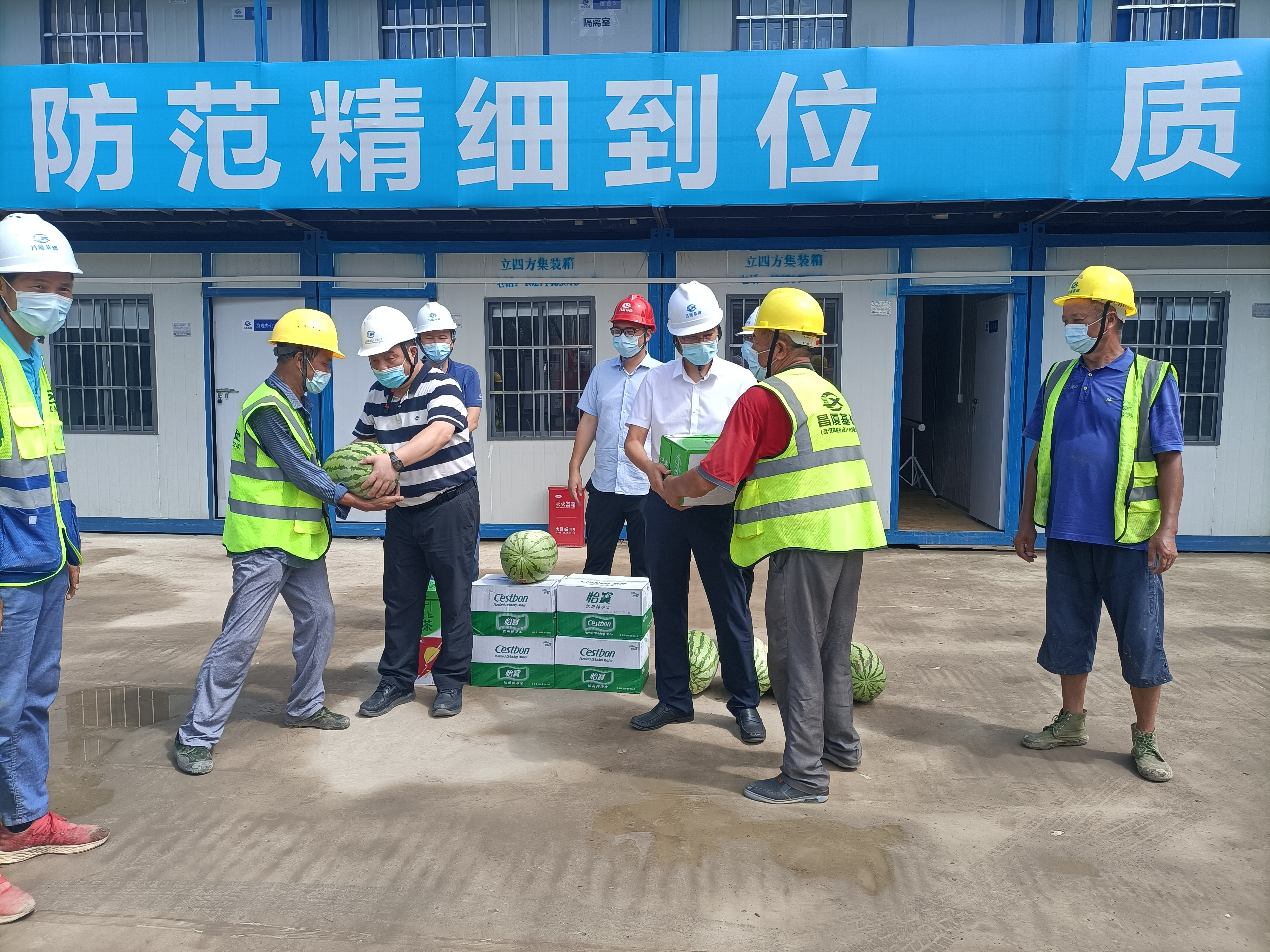 同時(shí),公司領(lǐng)導(dǎo)在項(xiàng)目現(xiàn)場(chǎng)開(kāi)展了送清涼活動(dòng),為一線人員送上礦泉水、西瓜、花露水、藿香正氣水等防暑降溫物資及個(gè)人防護(hù)用品,并叮囑在高溫堅(jiān)守崗位的一線職工要注意勞逸結(jié)合,做好疫情個(gè)人防護(hù),消除各類(lèi)安全隱患,確保夏季安全生產(chǎn)。(綜合部(黨群工作部)