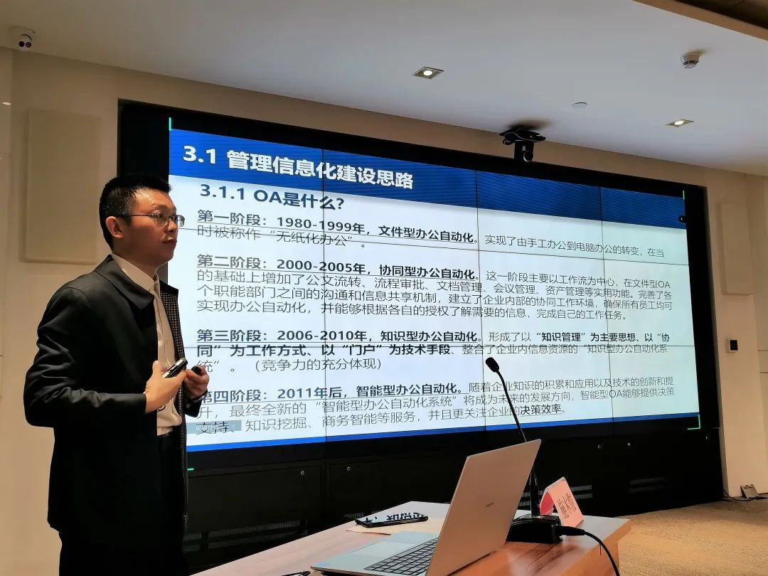 授課進(jìn)入尾聲時(shí),施木俊重點(diǎn)推介了公司在行業(yè)發(fā)展,企業(yè)管理上的優(yōu)勢(shì):在勘測(cè)與巖土工程專(zhuān)業(yè)領(lǐng)域,武勘公司能為工程建設(shè)項(xiàng)目的策劃階段提供最優(yōu)解,能精準(zhǔn)把控工程全過(guò)程風(fēng)險(xiǎn),實(shí)現(xiàn)項(xiàng)目風(fēng)險(xiǎn)、經(jīng)濟(jì)與時(shí)間相平衡;已積累的分布在武漢各地?cái)?shù)十萬(wàn)的鉆孔資料和已建設(shè)的數(shù)據(jù)管理平臺(tái),為項(xiàng)目開(kāi)發(fā)初期高效準(zhǔn)確進(jìn)行成本、工期預(yù)估提供了重要基礎(chǔ)資源;現(xiàn)有的智慧監(jiān)測(cè)平臺(tái)及自動(dòng)運(yùn)行的測(cè)量機(jī)器人讓項(xiàng)目建設(shè)與運(yùn)行維護(hù)一切盡在掌握;管理信息化更是成為了打破深井,為企業(yè)發(fā)展賦能的重要手段。