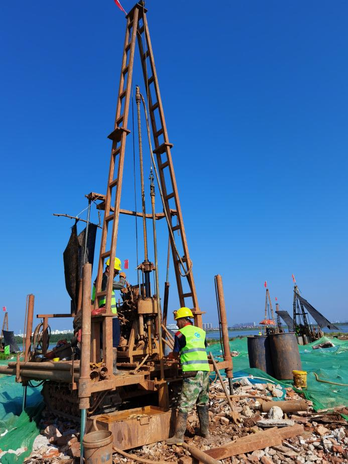 公司所屬新區(qū)分公司組織高水平項目團隊,正按建設方及設計單位要求,緊張有序地進行巖土工程詳細勘察工作。在實施過程中,為確保作業(yè)進度和防治安全隱患,項目團隊積極協(xié)調水務、燃氣、電力、地鐵等管理部門及拆遷單位,嚴格落實安全保障措施及環(huán)保措施,切實做到“零”安全事故、“零”環(huán)境污染事故和“零”管線安全事故。項目團隊現(xiàn)已投入18臺鉆機和3臺靜探車加緊作業(yè),確保項目按期交付。