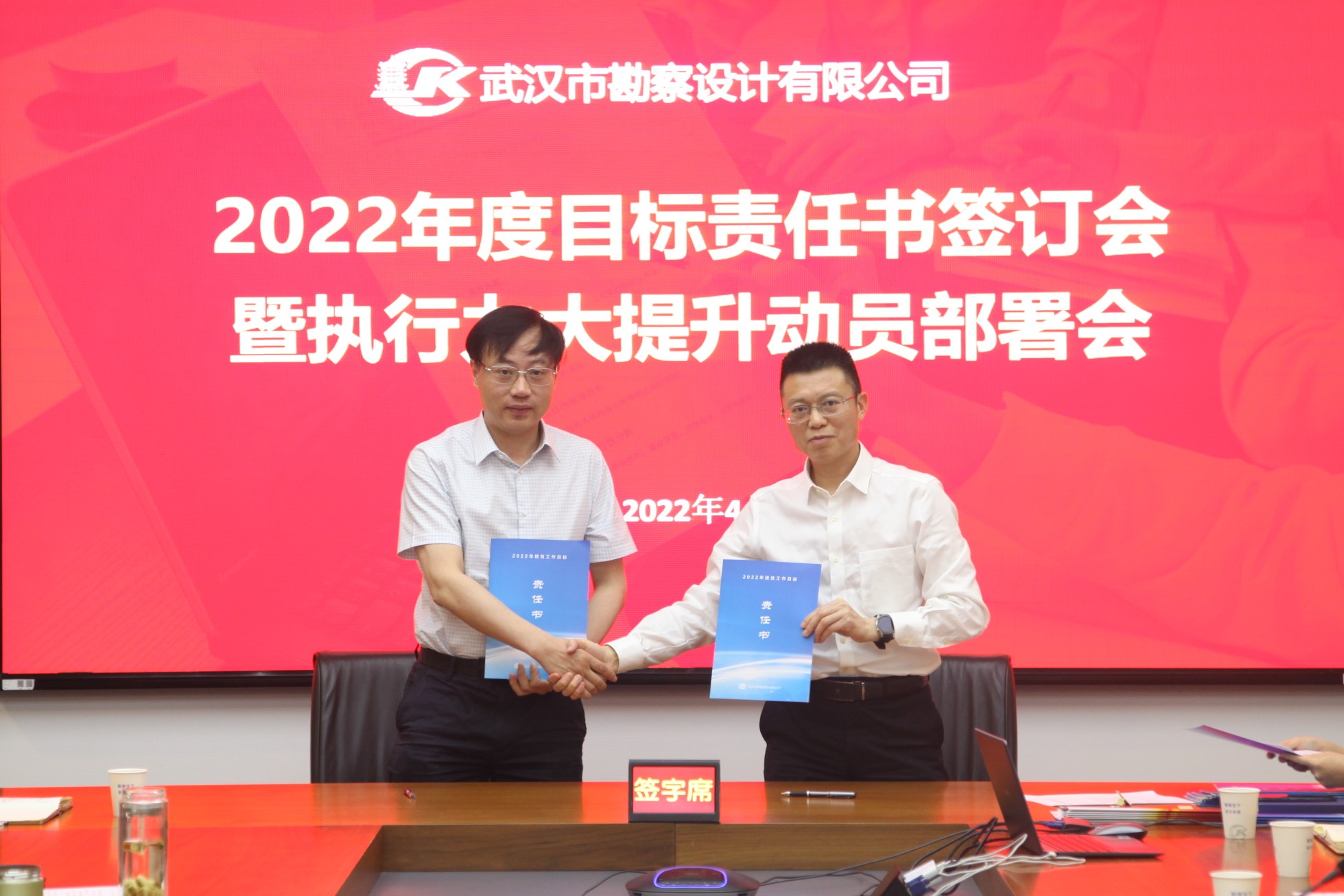 4月14日上午,公司在1717會議室組織召開“執(zhí)行力大提升”行動動員部署會暨2022年度目標(biāo)責(zé)任書簽訂會。會議圍繞武漢城建集團“萬千百十一”、“執(zhí)行力大提升”、“揭榜掛帥”三大行動作出了宣貫部署,以高質(zhì)量完成年度各項任務(wù)為目標(biāo)導(dǎo)向,進一步統(tǒng)一思想、分解任務(wù)、強化目標(biāo)、落實責(zé)任,為公司全年工作制定了科學(xué)的行動指南、打下了堅實的思想基礎(chǔ)。