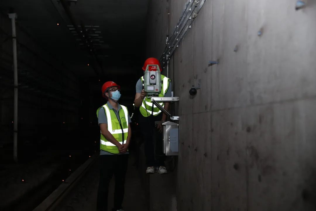 為保證6號線的安全運營,及時了解地鐵線路周邊項目施工引起的隧道結構變形情況,待到凌晨地鐵停運后,項目部人員連續(xù)奮戰(zhàn)了數(shù)十個夜晚,將自動化監(jiān)測儀器設備安裝到地鐵隧道中,確保地下的平穩(wěn)如常。