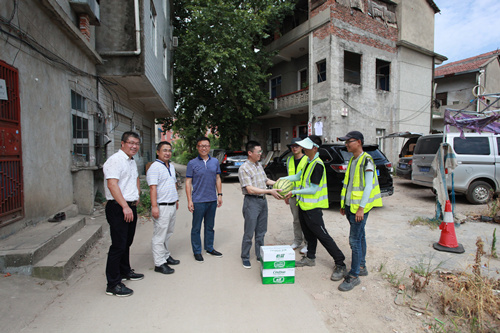 2018年入夏以來(lái),武漢出現(xiàn)持續(xù)40℃以上的高溫天氣,室外地表溫度普遍達(dá)到60度以上。高溫酷暑下,我公司分布在全市各區(qū)域的項(xiàng)目部工作人員依然奮戰(zhàn)在項(xiàng)目施工現(xiàn)場(chǎng)的第一線,他們搶抓施工黃金季,揮汗如雨,確保各項(xiàng)工程的安全、優(yōu)質(zhì)、高效。公司領(lǐng)導(dǎo)高度重視,董事長(zhǎng)廖建生親自部署,要求各部門(mén)及時(shí)安排防暑降溫物資,注重安全生產(chǎn),同時(shí)指示公司領(lǐng)導(dǎo)立即分赴項(xiàng)目現(xiàn)場(chǎng)慰問(wèn)指導(dǎo),察看施工作業(yè)情況,解決實(shí)際困難。