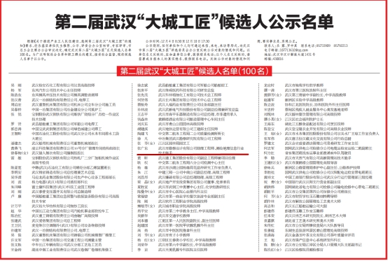 為了大力弘揚(yáng)“工匠精神”,厚植工匠文化,進(jìn)一步激發(fā)廣大職工凝心聚力、拼搏趕超的工作干勁,市總工會(huì)于2018年8月起在全市范圍內(nèi)開展了第二屆武漢“大城工匠”選樹工作。評(píng)選活動(dòng)歷時(shí)4個(gè)月,經(jīng)各基層單位民主推薦、公示、評(píng)委會(huì)辦公室初審、專家評(píng)審、市總工會(huì)主席辦公會(huì)審議決定,確定了武漢第二屆“大城工匠”正式候選人名單100名,并于12月5日在長江日?qǐng)?bào)第五版正式登報(bào)公示。我公司測繪工程公司總經(jīng)理助理、全國測繪地理信息行業(yè)技術(shù)能手張廣東同志榮獲第二屆武漢“大城工匠”。
