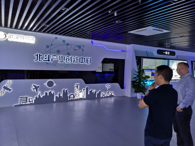 在總經(jīng)理王波、副總經(jīng)理華中雄等人的陪同下,測繪公司一行人參觀了北斗產(chǎn)業(yè)創(chuàng)新中心。王波總經(jīng)理從軟件平臺、數(shù)據(jù)研發(fā)、行業(yè)應(yīng)用、運營服務(wù)等方面對北斗產(chǎn)業(yè)的發(fā)展與應(yīng)用情況進行了詳細(xì)介紹,并表示湖北地信集團致力于積極推動北斗和其他領(lǐng)域的融合發(fā)展,形成了初具規(guī)模的產(chǎn)業(yè)鏈,充分基于衛(wèi)星定位、云計算、物聯(lián)網(wǎng)等新技術(shù),開拓了政務(wù)、民生、產(chǎn)業(yè)三大類十余項的智慧應(yīng)用,已逐漸深入到城市建設(shè)和管理的各個領(lǐng)域。