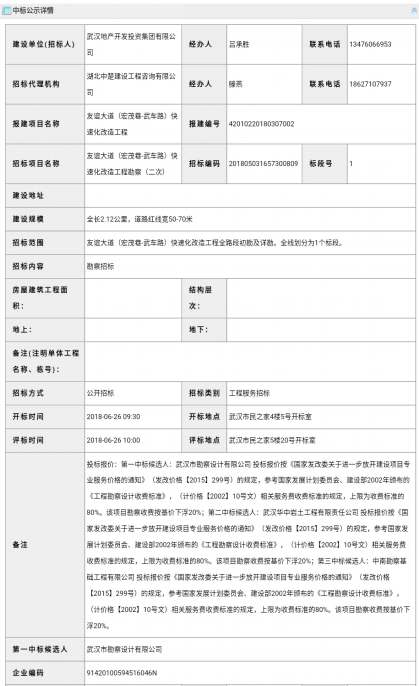 2018年6月26日6月29日,經(jīng)投標(biāo),我公司中標(biāo)友誼大道(宏茂巷~武車路)快速化改造工程、中山大道(解放公園路黃浦大街)綜合改造工程及姑嫂樹立交上橋匝道工程勘察項目。我公司承擔(dān)上述項目巖土工程初步、詳細勘察工作及后續(xù)相關(guān)服務(wù)。預(yù)計三條道路工程勘察合...
